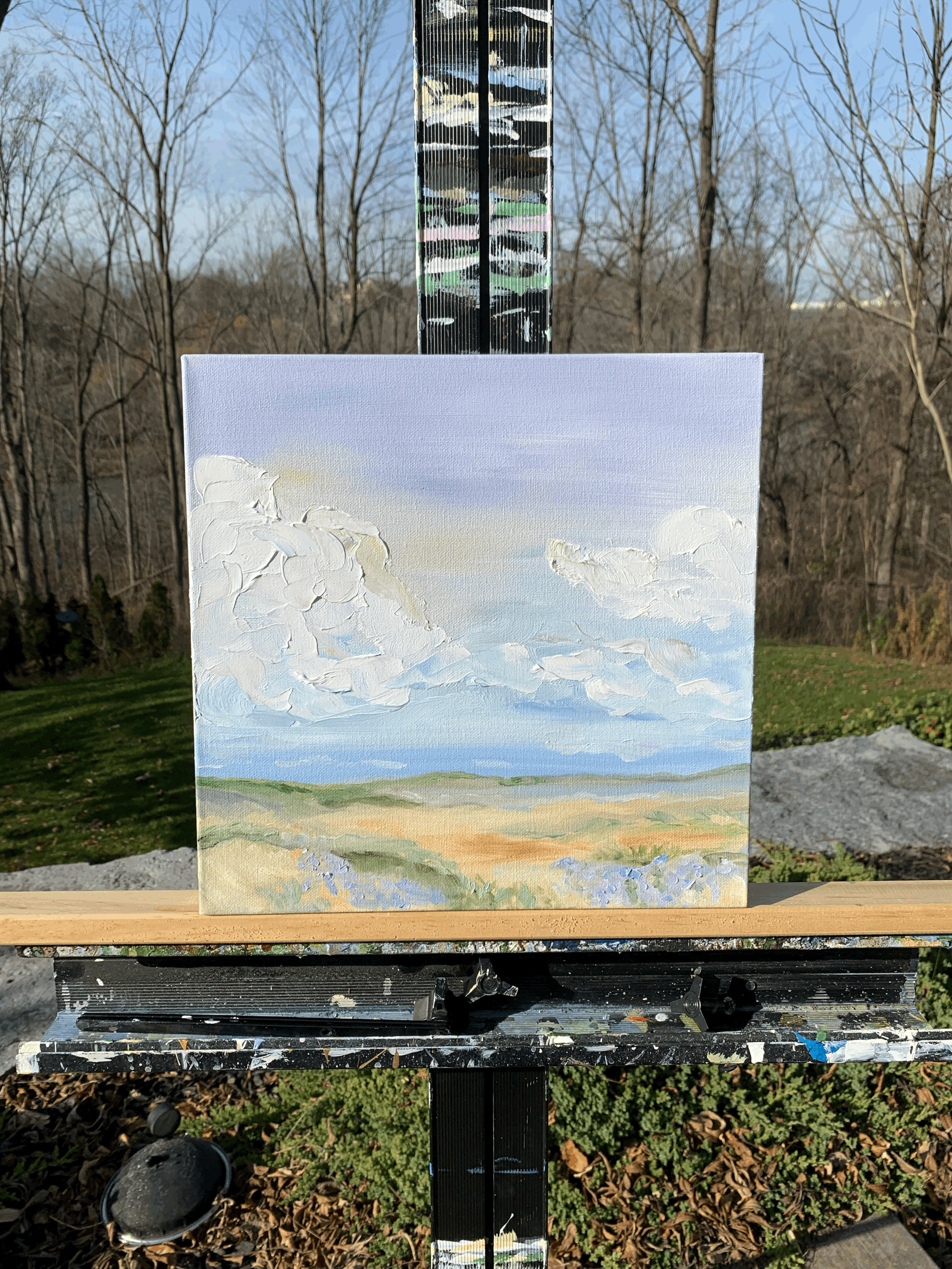 A soft, calming oil painting of the dunes of Cavendish. Lucy Maud Montgomery can almost be seen walking along the shore…and quite possibly did! This piece can be paired with Softness as a diptych.